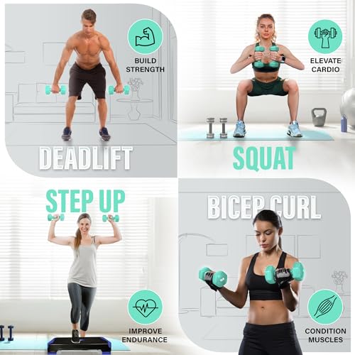VERSATILE USES: This dumbbell set offers 7 weight options (2lb, 3lb, 5lb, 8lb, 10lb, 12lb, 15lb), ideal for beginners starting strength training; These hand weight sets are also a great addition to cardio, aerobics & step workouts for women