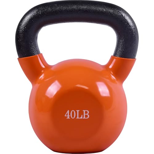 Specification: 20, 25, 30, 35, 40, 45 Lbs Kettlebell Iron Sand Filled Weights for Women and Men, Orange Kettlebells with Smooth PP Material Surface and Non-slip Handle, Multiple Sizes and Weights