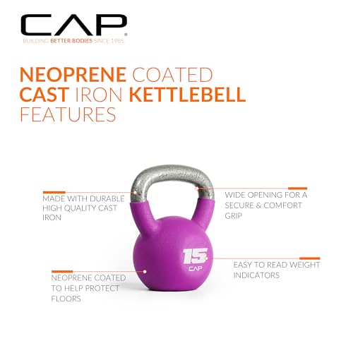 Specification: CAP Barbell Cast Iron Kettlebell – Coated Options, Singles and Sets, Multiple Weight Choices