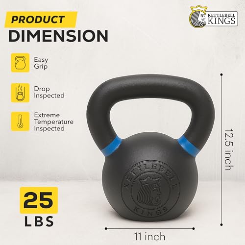 Powder Coated: These 25 lb Kettlebell Kings cast iron kettlebells are powder coated to prevent rust and slipping. The textured surface helps improve grip strength without needing chalk