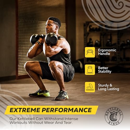 Kettlebell Kings Powder Coated Kettlebell Weights 5-90 LB | Workout Gym Equipment & Strength training sets for Women & Men | Durable Coating for Grip Strength, Rust Prevention- New