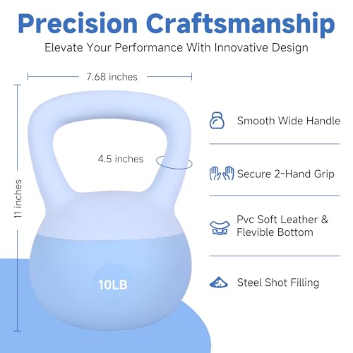 【Extra-Wide Handle for Strength Training】Our soft kettlebells are designed with extra wide, non-slip handles for a comfortable and secure two-handed grip during your workout. Reduce hand fatigue and improve strength training efficiency