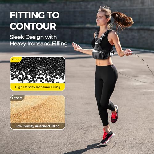 PERFECTLY CRAFTED DETAILS: Our weight vest features double-line stitching for enhanced durability, eliminating any concerns of leakage. The adjustable straps come with loops to tuck in the excess ends, keeping things tidy and preventing distraction while running. Made from breathable neoprene, it dries quickly and resists odor even after intense workouts. For added comfort, two shoulder pads are included to ensure a better touch.