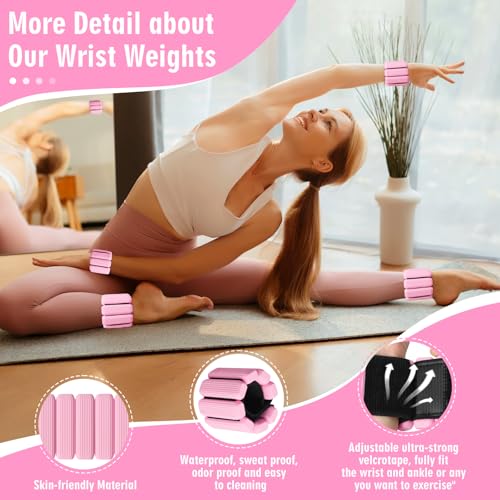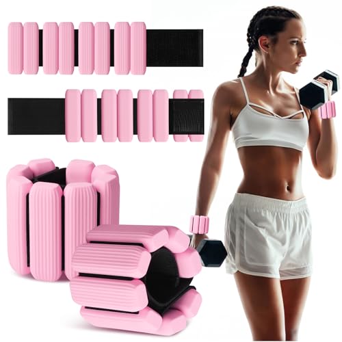 MESUADESI Wrist Weights Set of 2, Wearable Wrist Ankle Weights for Women & Men, Silicone Weighted Bangles Adjustable Arm and Leg Weights for Walking Yoga Pilates Running Dance Gym 2lb