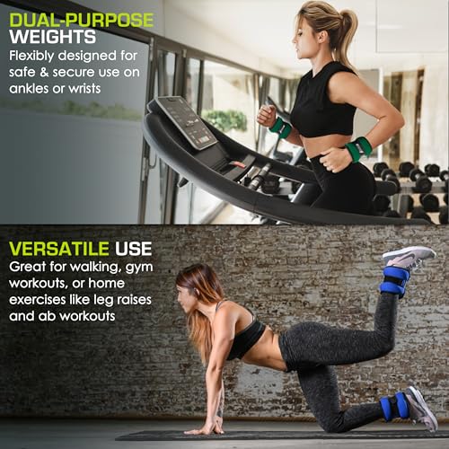 ProsourceFit Ankle/Wrist and Arm/Leg Weights Set of 2, Adjustable Strap 1 lb-5 lb, Adjustable Weight 15 lb, 10 lb, 7 lb for Men and Women