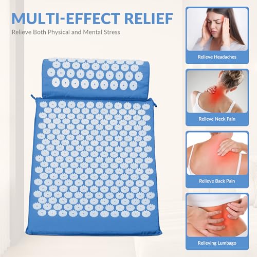 Specification: Fitvids Acupressure Mat and Pillow Set for Back/Neck Pain, Acupuncture Products to Relieve Muscle Fatigue, Improve Insomnia for Sedentary People, Acupuncture Eases Stress, Massage Mat, Blue