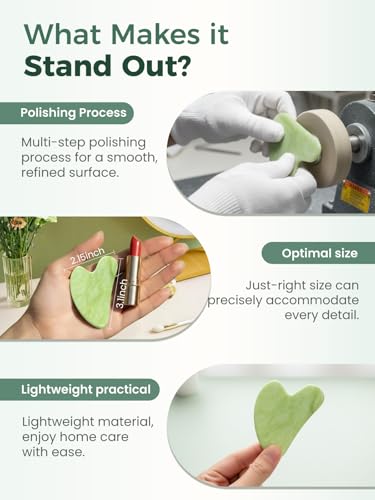 Natural Material: Gua sha scraping massage tool made by 100% natural jade stone, which is beneficial minerals to skin beauty and body health; Long lasting, super easy to care