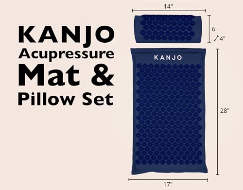 Specification: Kanjo Acupressure Mat and Pillow Set for Back Pain Relief & Neck Pain Relief, with Pressure Points for Muscle Pain Relief with Travel Bag – Navy