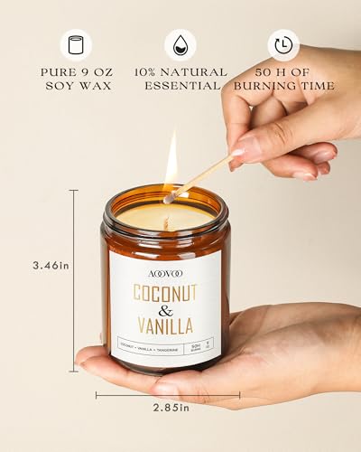 AOOVOO Coconut Vanilla Candles – 9 oz Scented Candles, Aromatherapy Candle, Soy Candle for Home Scented