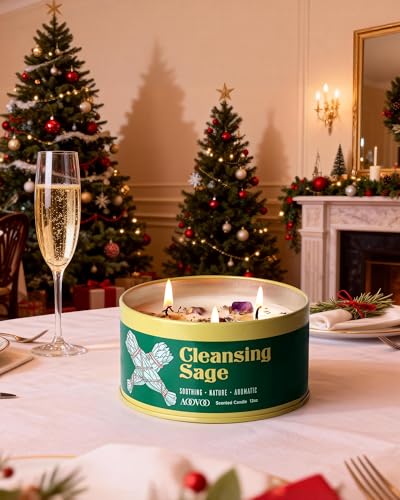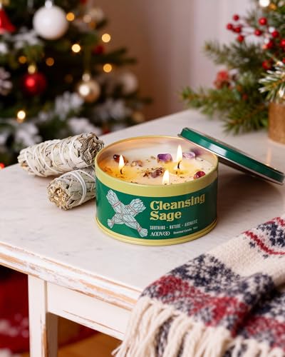 Specification: AOOVOO Sage Candle for Cleansing – 3 Wick 12oz Large Scented Candle with Crystals & Sage Leaves Inside, Soy Candles Non Toxic for Meditation Spiritual Gift, Aromatherapy Candle for Women Men