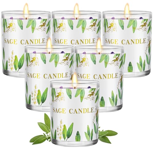 🔥[Natural sage scented candle]: The scented candles made of naturally cultivated sage and 100% natural soy wax (no petroleum or paraffin wax), wick is made of Lead free cotton, all-natural, and 6 Pack will burn for about 200 hours under typical conditions. Its an earthy sage aroma creates a natural harmony in the home and body to help you help you focus on energy clearing, protection, and blessings.