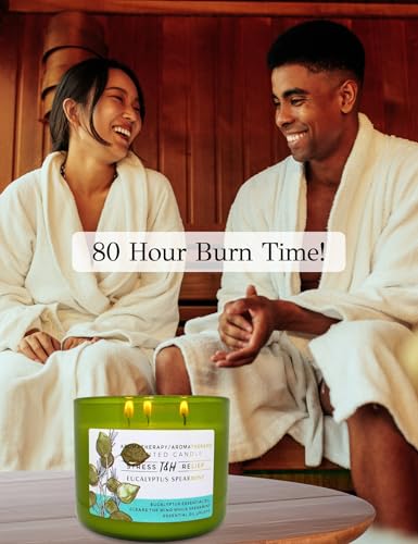 Eucalyptus Spearmint Aromatherapy Candle 3-Wick | Soy Scented Candle for Home 15.8 oz | Stress Relief Candle | Spa Candles Gift for Relaxation, Men & Women | Long Lasting Eucalyptus Candles