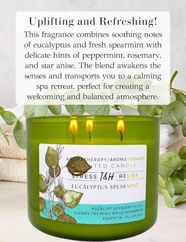Specification: Eucalyptus Spearmint Aromatherapy Candle 3-Wick | Soy Scented Candle for Home 15.8 oz | Stress Relief Candle | Spa Candles Gift for Relaxation, Men & Women | Long Lasting Eucalyptus Candles