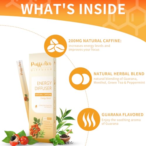 Specification: Energy Herbal Diffuser Pen – Caffeine Diffuser for Energy Boost (Guarana, Green Tea, Peppermint & Menthol) – 600 Uses, 1 Sticks