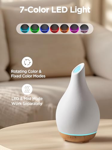 Specification: InnoGear Essential Oil Diffuser, 150ml Ceramic Diffuser Handcrafted Stone Aromatherapy Diffusers Ultrasonic Cool Mist Humidifier Vaporizer 2 Mist Modes Waterless for Home, White Vase-Shaped Ceramic