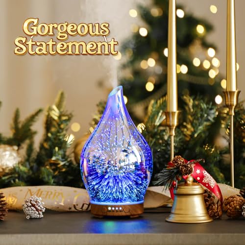 UNIQUE ART DECORATIVE DESIGN – Our 150ml glass essential oil diffuser has a firework 3D effect glass cover and wood grain decorative base. It is very suitable for your bedroom, living room, children’s room, study room, office, and yoga room.