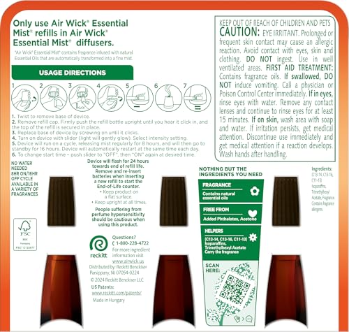 Specification: AIR WICK Essential Mist – Triple Refill Hawaii Exotic Papaya & Hibiscus Flower (3X.67) oz.