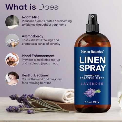 Lavender Linen Spray 8 fl oz – Refreshing Fabric Refresher & Pillow Spray for Bedding, Bed Sheets & Room – Soothing Room Mist – Nexon Botanics