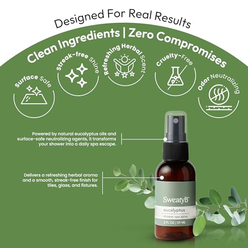Specification: SweatyB® Eucalyptus Shower Spray – 100% Pure Eucalyptus Essential Oil Shower Mist for Sauna & Steam Room – Natural Aromatherapy for Stress & Sinus Relief – Vegan – Made in USA – 2 oz