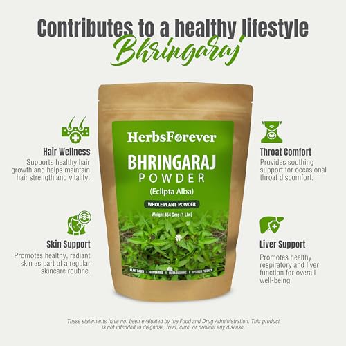 Specification: HerbsForever Bhringaraj(Eclipta Alba)-Whole Plant Powder Hair, Scalp & Liver Support Wild Harvested -Non GMO – 2X Potency| Ultra Clean| NO Sand & Mud | Steam Sterilized| 16oz-1LBS Ayurvedic Premium