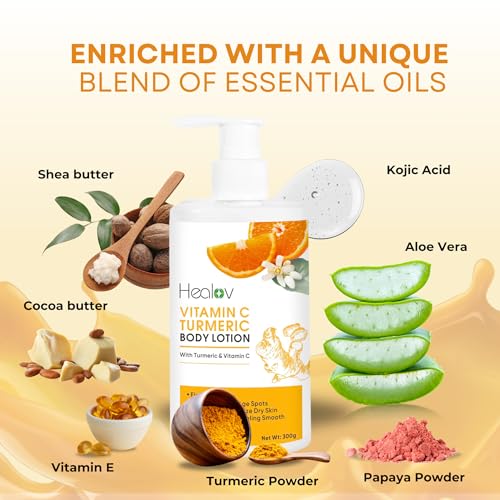 EXPERIENCE GLOWING SKIN: Our Turmeric Body Lotion, a brightening and rejuvenating moisturizer, is enriched with organic turmeric to address spots, marks, and discoloration, promoting a radiant complexion and smooth tone.