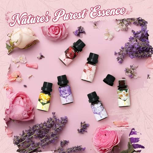 Floral Essential Oil Set, Premium Essential Oils for Diffusers for Home, Includes Lilac, Freesia, Jasmine, Cherry Blossom, Rose and Lavender Candle Scents for Candle Making, DIY Soaps,Cleaning