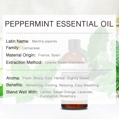 Peppermint Essential Oil, 100% Pure & Natural Peppermint Oil 100ML, Premium Grade Aromatherapy Oil for Skin Body Hair Care, Freshening Air, Mood, Diffuser, Massage, Soap and Candle Making