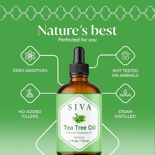 Siva Tea Tree Essential Oil – 4 Fl Oz – 100% Natural Tea Tree Oil – for Diffuser, Face, Skin Care, Aromatherapy, Hair Care, Scalp and Body Massage – with Dropper