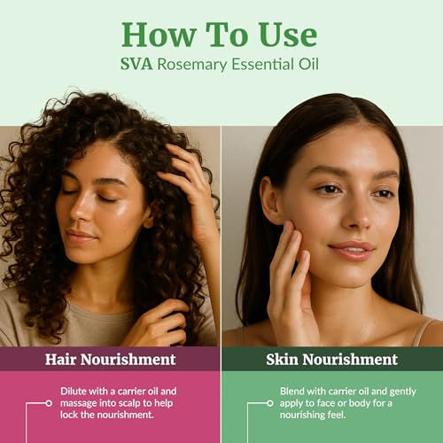 Specification: SVA Rosemary Essential Oil – 4 Fl Oz – 100% Natural Rosemary Oil for Hair, Face, Skin Care, Diffuser, Aromatherapy, Scalp, Body Massage, Soap and Candle Making – with Dropper