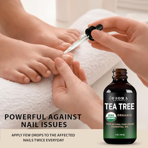 Tea Tree Oil – 100% Pure Organic Tea Tree Essential Oil for Skin, Face, Hair, Scalp, Nails, and Toenail – Therapeutic Grade Tree Tea Oil for Acne & Hair Growth – 1 fl oz – by Fiora Naturals
