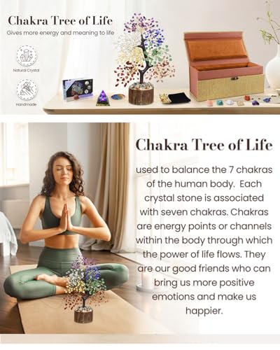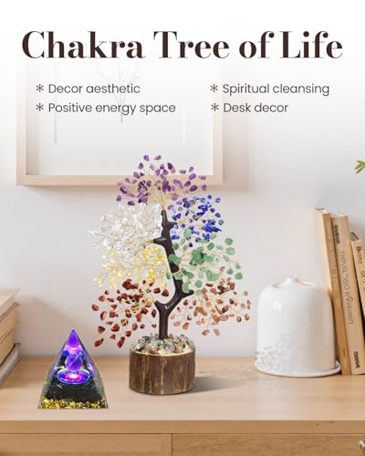 Specification: 7 Chakra Crystal Tree of Life with Orgonite Pyramid (Set 2) – Unique Birthday Gifts for Women, Chakra Healing Trees Positive Energy for Home Office Desk Decor, New House Warming Gift