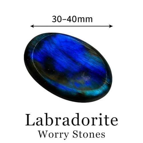 Specification: Labradorite Worry Stone 35-40mm – Healing Thumb Crystal for Anxiety & Stress Relief – Palm Meditation Stone with Velvet Pouch Christmas Gift for Men & Women