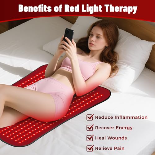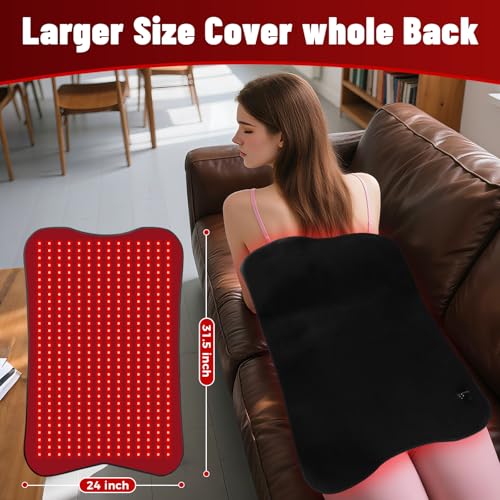 Larger Size 31.5” x 24”: The light therapy pad boasts larger size, which can cover multiple body parts. You can use it on your back, belly, waist, abdomen, shoulder, chest, legs, thigh, calf, knees and feet. You can put it over your body while playing with your phone, or you can lean against it while you work. A strap comes with the infrared pad out of hands-free idea, so you can also tie it around your waist.