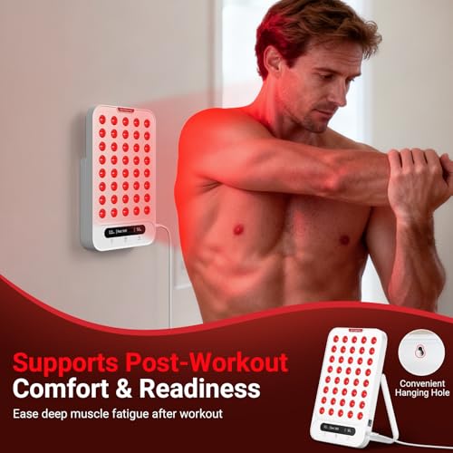 Portable & Lightweight: With dimensions of 10.3″ × 6.7″ × 1.4″, Comfytemp red light panel is space-saving and compact for travel so you can relax anywhere. Weighing just 1.59 lbs, it feels light and agile in your hand, making it easy to move and position with one hand. The built‑in 180° adjustable stand lets you freely set the perfect angle, so you can target the face, back, knees, shoulders, neck, hands, legs, feet, and more.