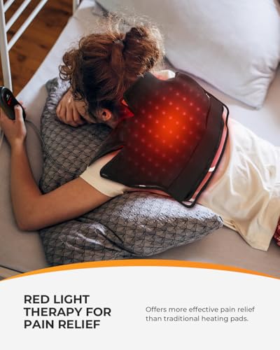 CooCoCo Red Light Therapy Pad for Neck Shoulder Pain Relief, FSA Wearable Near Infrared Light Wrap for Body, HSA Eligible Red Light Heated Therapy Belt for Upper Back, 660nm&850nm