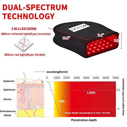 Suitable Size – [10.6 inch x 7.4 inch x 2.3 inch] Double-sided Pad design and all around 360° cover ensure your hand for full hand therapy. Work with auto shut-off timer (20 minutes) do not exceed 40 minutes of use in one therapy session, cool your body and drink some water before the next applying. The large internal space of the red light therapy for body is suitable for most people’s sizes
