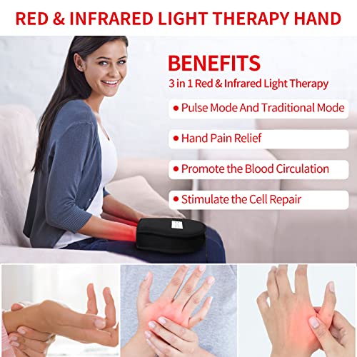 HAIYUE Red Light Therapy Device Mitten with 880nm Infrared Light Therapy Pulse Mode for Hand Finger Body, New Flat LED Lights Pain Relief Muscle Relax Home Office Use Gift for Men & Women