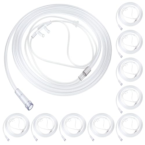 Anglechic 10 Pack 7Ft Adult Oxygen Nasal Cannula, Soft Oxygen Tubing for Adult, Cannula Nasal Tubing with Soft Curved Nose Piece, High Flow Lightweight Tube(Transparent)