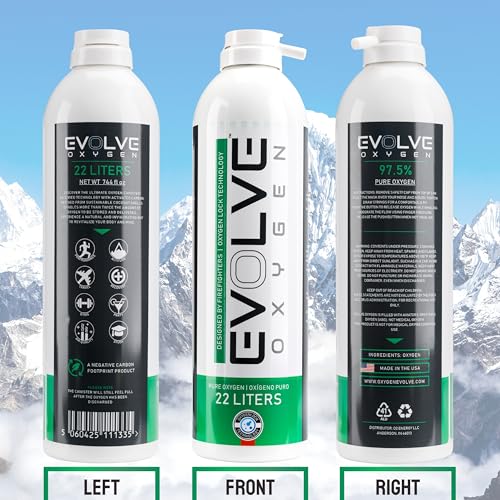 Specification: EVOLVE | 44-Liters of Pure Oxygen | Mask and Tube | 2X 22 Liter Canisters | Portable Oxygen Cans | Ideal for Home Use and Outdoor Activities | Designed by Firefighters | Made in The UK | Pack of 1