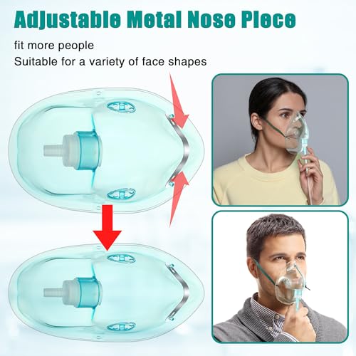Thoughtful Design: The oxygen mask for adult comes with an adjustable elastic headband that suits different head sizes, ensuring a safe, comfortable fit without slipping. It is further enhanced by a malleable nose clip that allows for precise adjustment of the nose profile, proper sealing to ensure optimal oxygen delivery, and a 7 foot anti kinking tube that allows for barrier free movement and consistent oxygen flow; This feature also helps prevent oxygen leaks, maximizing efficiency
