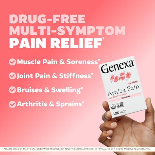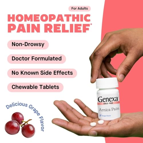 Genexa Arnica for Pain Relief | Alleviate Muscle & Joint Pain, Soreness & Stiffness | Reduces Bruises & Swelling | Organic Grape Flavor | Homeopathic Remedy Made Clean | 100 Chewable Tablets