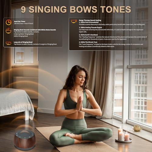 Electronic Tibetan Singing Bowl,Frequency Generator for Healing,Meditation Sound Machine, 256HZ-432HZ-528HZ 9 Healing Frequencies,4 Timers and Luminous Button,Yoga, Relaxation, Reiki