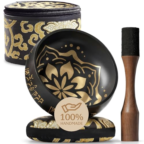 Specification: Handmade Tibetan Etched Singing Bowl Set with Case – Meditation Bowl & Sound Bowl with Cushion, Mallet & Guide – Stress Relief Instruments – Yoga Therapy Tools – Mindfulness Gift Set