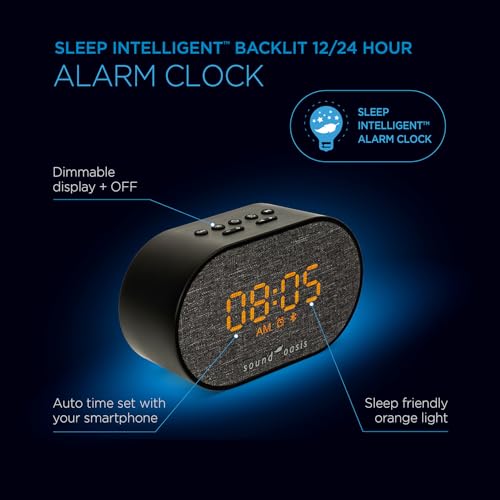 Sound Oasis® Bluetooth® Sleep Sound Therapy System® Alarm Clock – Sleep Better, Manage and Mask Tinnitus, 30 Built-in Sounds, Sleep-Friendly Lighting, Travel Friendly (BST-150)
