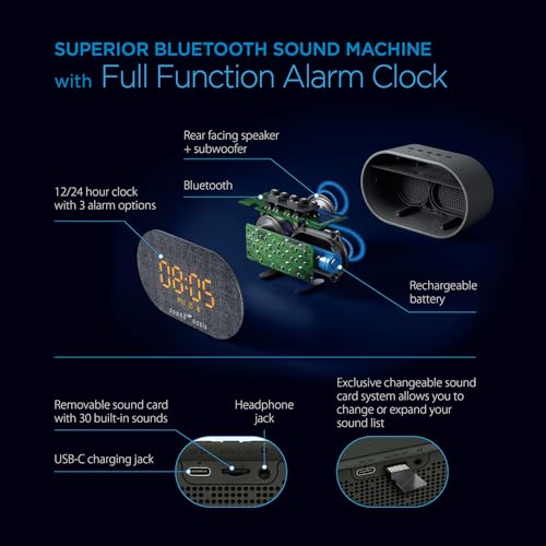 Specification: Sound Oasis® Bluetooth® Sleep Sound Therapy System® Alarm Clock – Sleep Better, Manage and Mask Tinnitus, 30 Built-in Sounds, Sleep-Friendly Lighting, Travel Friendly (BST-150)