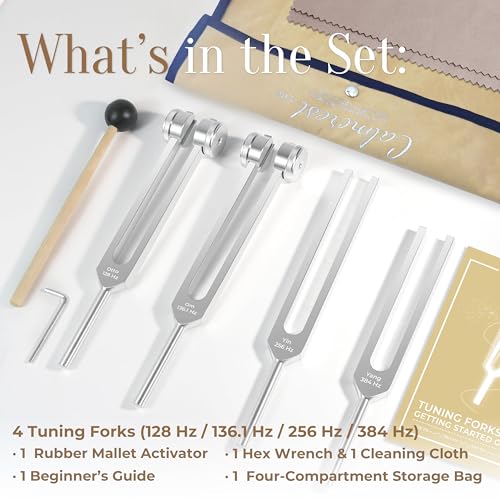 Tuning Forks for Healing Set (128Hz, 136.1Hz, 256Hz, 384Hz) – Weighted & Unweighted Tuning Forks with a Rubber Mallet – Chakra Sound Therapy Instruments with a Bag, Healing Gifts for Women & Men (10)