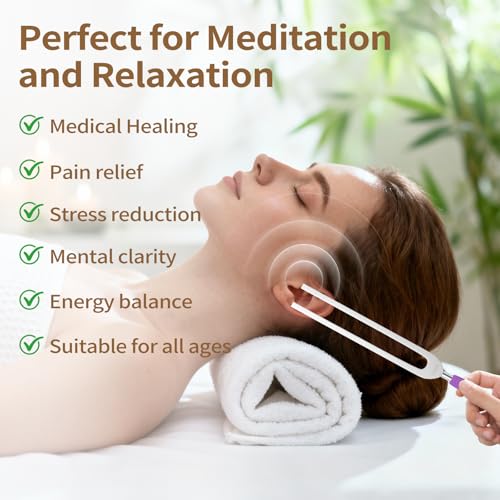 【Multifunctional Sound Healing Tools】This healing tuning fork set is designed to relieve muscle tension, reduce stress, and promote deep relaxation and quality sleep. Ideal for sound therapy, meditation, yoga, breathing exercises, and chakra tuning.