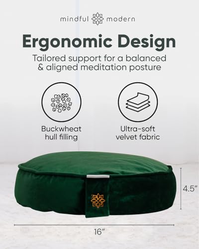 Specification: Mindful Modern Velvet Meditation Cushion | Luxe Zafu Yoga Floor Pillow Seat | Posture Support | Buckwheat Hull Filled | Large Round Cushion with Removable Washable Cover + Carry Handle