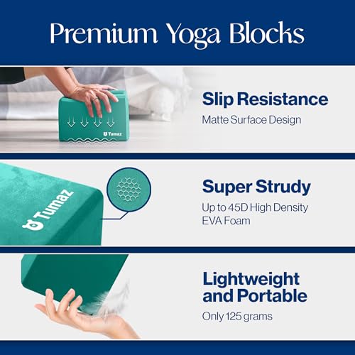 Specification: Tumaz Non-Slip Yoga Blocks 2-Pack – High Density/Lightweight EVA Foam & Natural Cork for Stability, Premium Set with E-Book Included