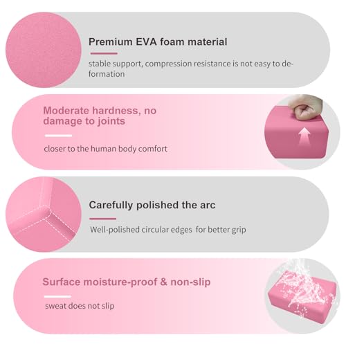 Premium EVA Foam: Foam blocks are made of high-quality EVA foam, lightweight, and has good resilience. With the smooth surface and non-slip design, our yoga blocks provide a comfortable and stable support for your yoga practice